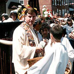 By 1975, the carnevale had expanded to an eight-day event, centered around the June 13th date, which is St. Anthony of Padua's feast day, and became known as La Festa Patronale. The festival culminated with the traditional procession of those saints that were especially important to parishioners. These saints, which are St. Anthony of Padua, St. Michael the Archangel, St. Rocco, St. Francis de Paola, St. Patrick, St. Frances Xavier Cabrini, St. Rita, St. Gabriel of Our Lady of Sorrows, Mater Maria dell Misericordia, Our Lady of Mt. Carmel, St. Lucy, and St. Pius X, are placed on platforms and carried or pulled by men for two miles through the Italian community. The procession also includes parish priests, the Bishop of Wilmington, members of various religious societies, men and women dressed in regional Italian costumes, children dressed in the Lenten religious costume, the Via Crucis (stations of the cross), a float bearing the model of the church, elected government officials, and several bands, especially the Old Colonial Band. The latter band has been performing since it was founded by Salvatore Zoli in 1900, and was conducted by his grandson, Joseph, in year 2000.