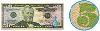 The higher-denomination $10, $20 and $50 bills have a third easy-to-check security feature: