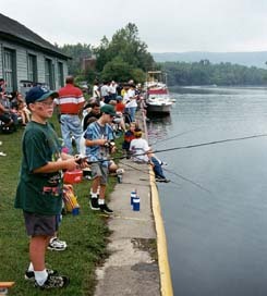 The kids in the photo are competing in their town's Youth Fishing Derby to see who can catch the most fish. The event is part of the Little Falls, New York, Canal Celebration -- an annual festival that celebrates the importance of the Erie Canal to the city.